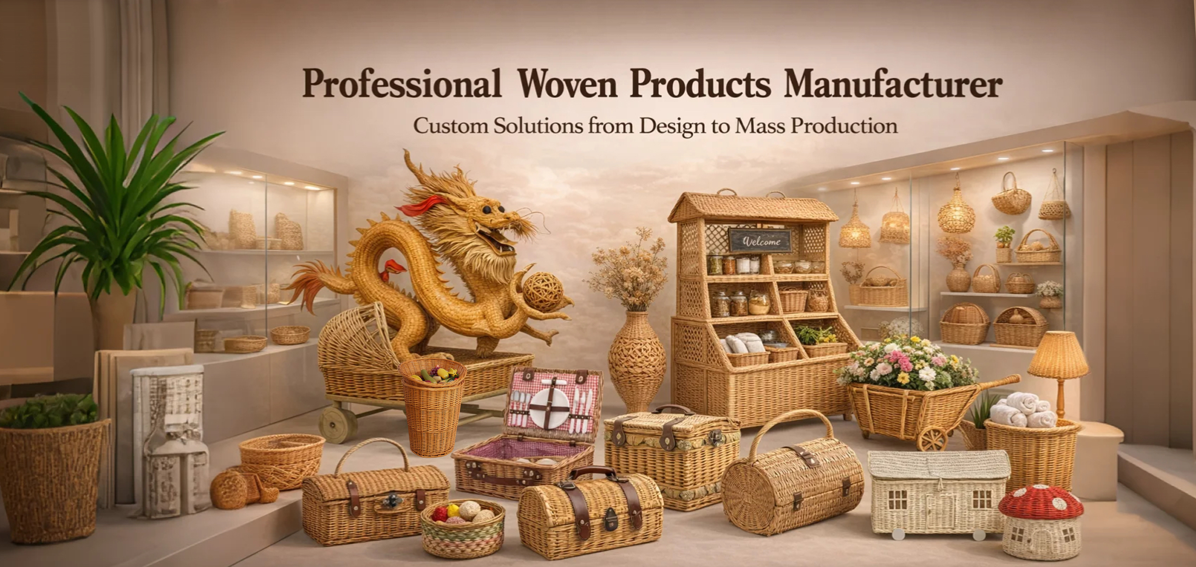 We are a professional custom woven baskets manufacturer. If you choose to cooperate with us, we have superb workmanship, and a variety of products to meet your various needs.